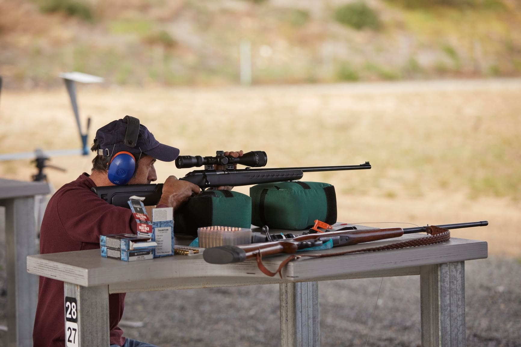 Our air-rifle & rimfire range has 12 fully covered bench rest lanes out to 50m and 6 lanes all the way to 100m.